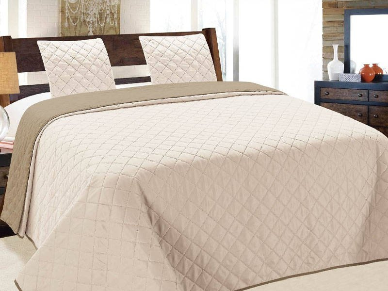 Elegantní dvoustranné přehozy na postel i pohovku. Kompozice atraktivních barev bude ladit s každým vybavením ložnice nebo obývacího pokoje. Každý přehoz s atraktivním prošívaným vzorem má polyesterovou výplň. 100% matné polyesterové vlákno. Teplota praní 30°C. Oeko-Tex Standard 100.