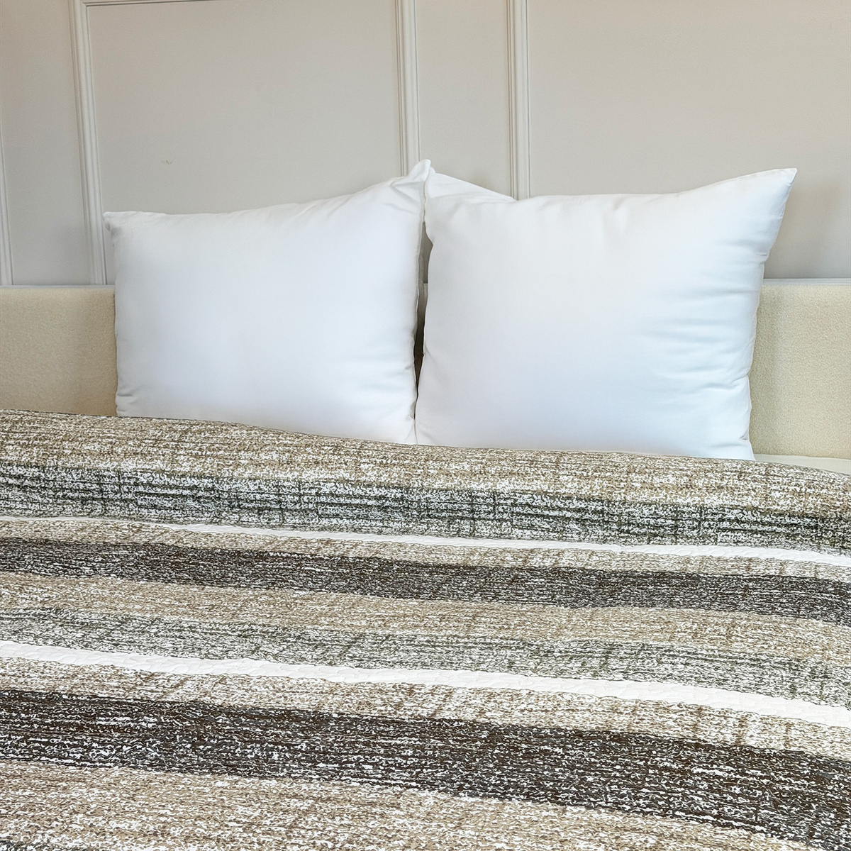 Elegantní dvoustranné přehozy na postel i pohovku. Kompozice atraktivních barev bude ladit s každým vybavením ložnice nebo obývacího pokoje. Každý přehoz s atraktivním prošívaným vzorem má polyesterovou výplň. 100% matné polyesterové vlákno. Teplota praní 30°C. Oeko-Tex Standard 100.