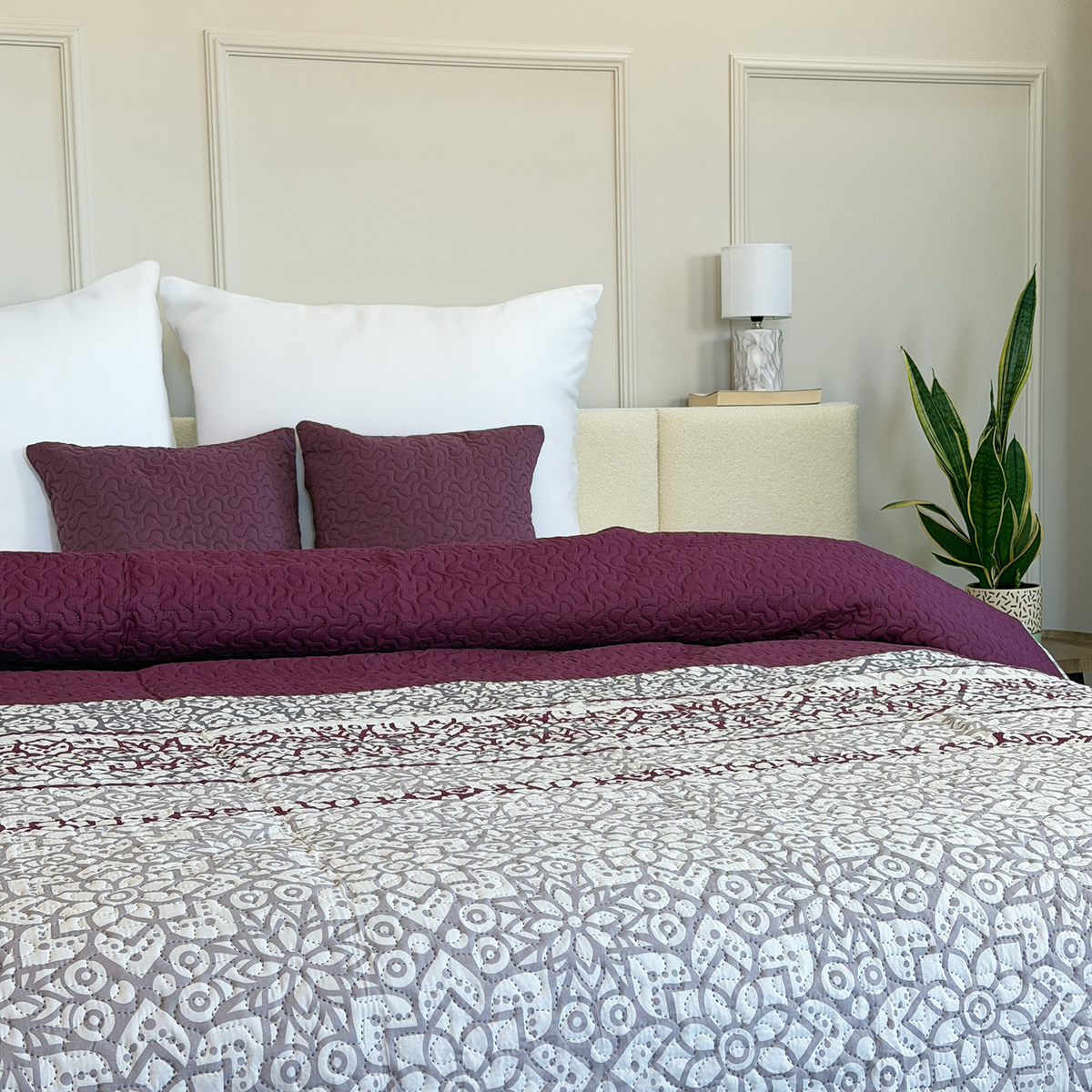 Elegantní dvoustranné přehozy na postel i pohovku. Kompozice atraktivních barev bude ladit s každým vybavením ložnice nebo obývacího pokoje. Každý přehoz s atraktivním prošívaným vzorem má polyesterovou výplň. 100% matné polyesterové vlákno. Teplota praní 30°C. Oeko-Tex Standard 100.
