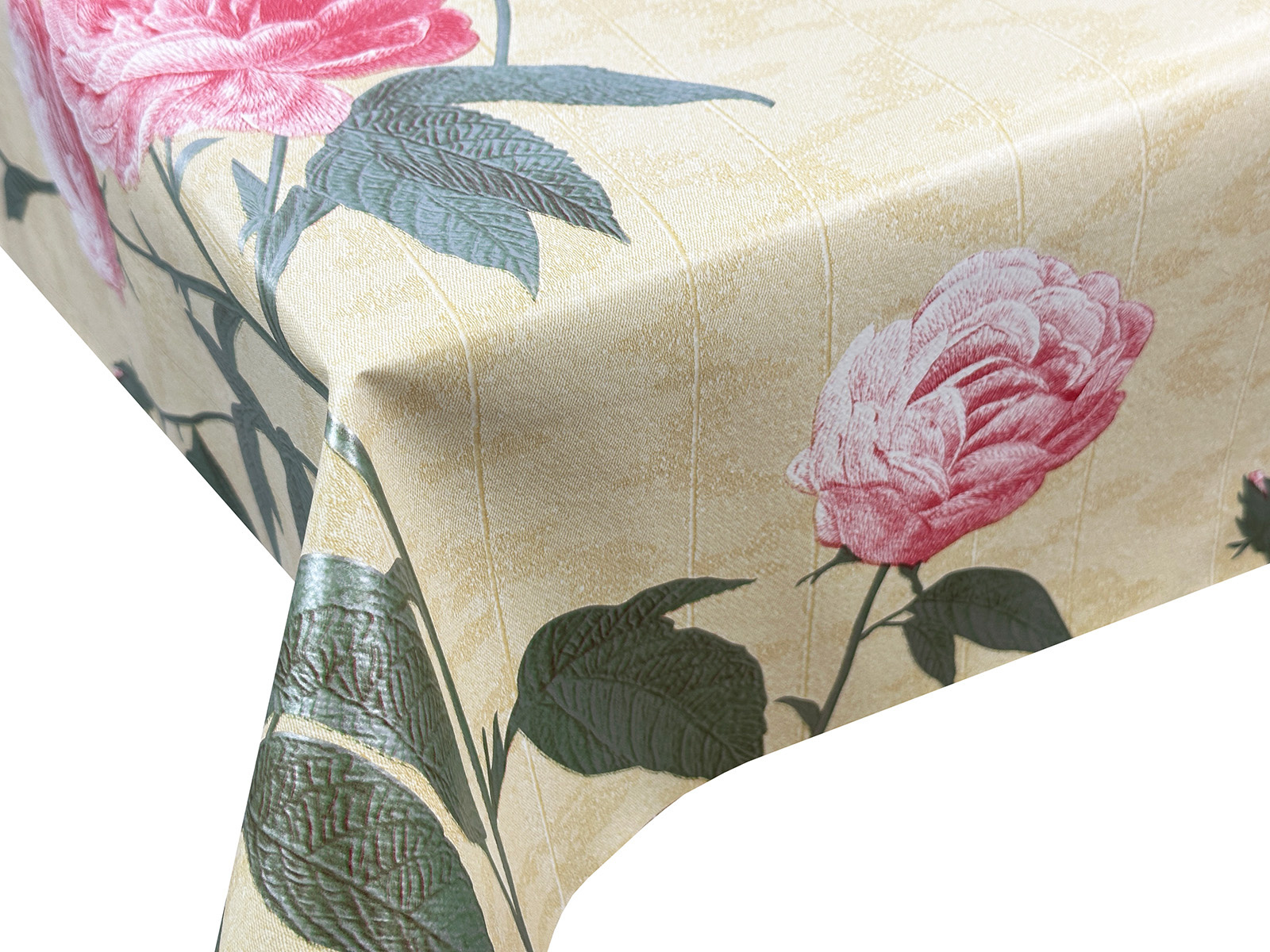 Foliový ubrus na podkladu z plátna v rolích 140 cm šir. a 20 m dlouhých. Složení: potištěná fólie 100% PVC na podkladu ze 100% plátna PP. Oeko-Tex Standard 100.