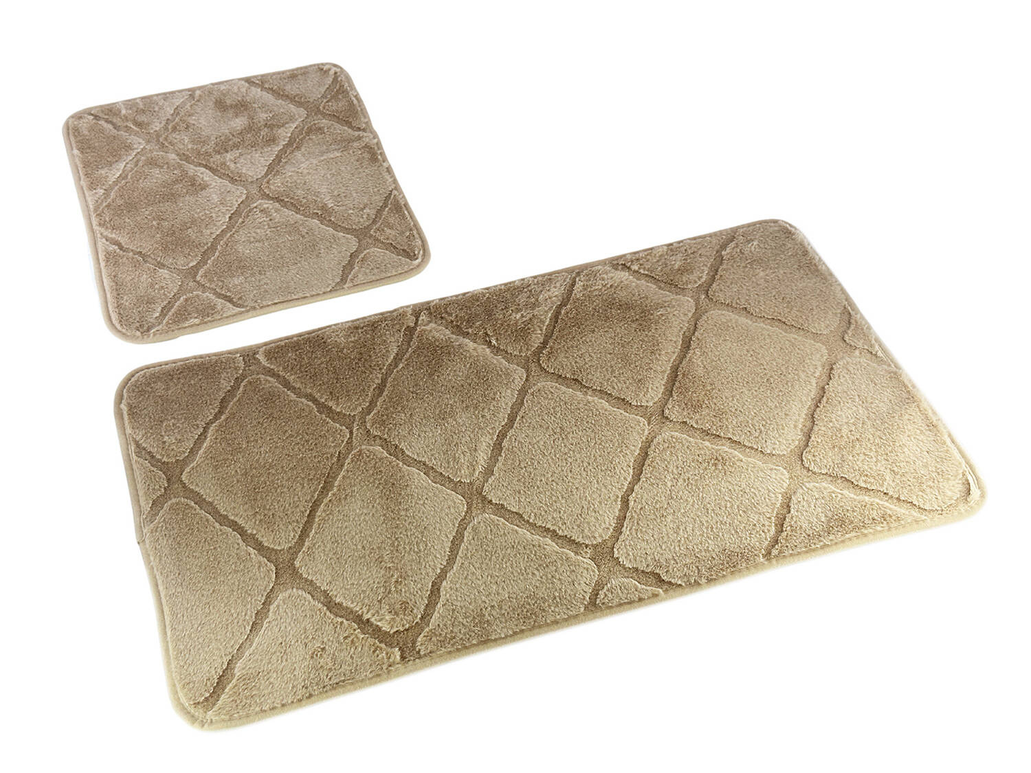 Koupelnové předložky: vyrobeno z měkkého polyesterového mikroflanelu naplněného houbou, na neklouzavém povrchu. Jednobarevné v elegantních, reliéfních 3D vzorech. Na protiskluzovém podkladu z latexu. Doporučené praní: 30°C.