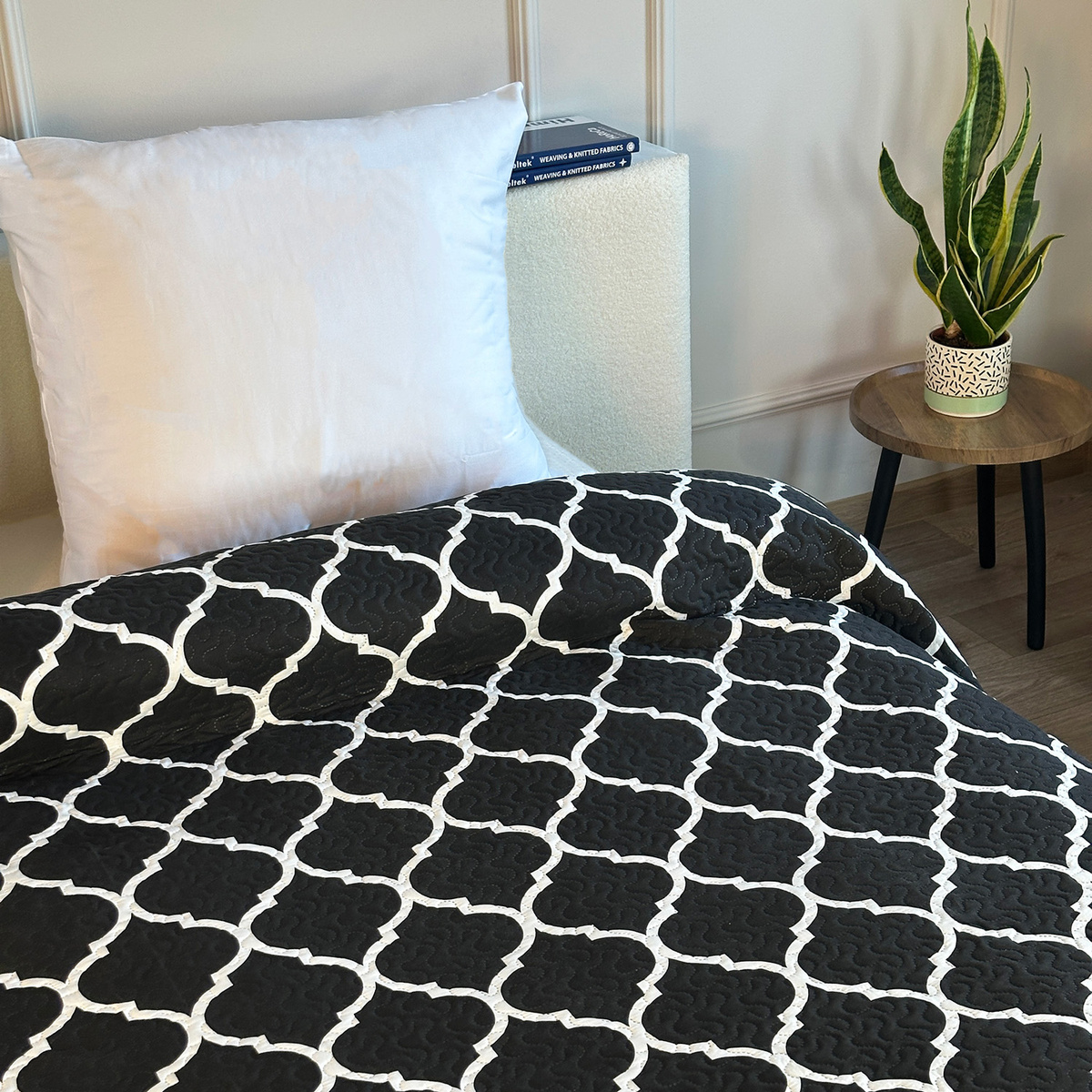Elegantní dvoustranné přehozy na postel i pohovku. Kompozice atraktivních barev bude ladit s každým vybavením ložnice nebo obývacího pokoje. Každý přehoz s atraktivním prošívaným vzorem má polyesterovou výplň. 100% matné polyesterové vlákno. Teplota praní 30°C. Oeko-Tex Standard 100.