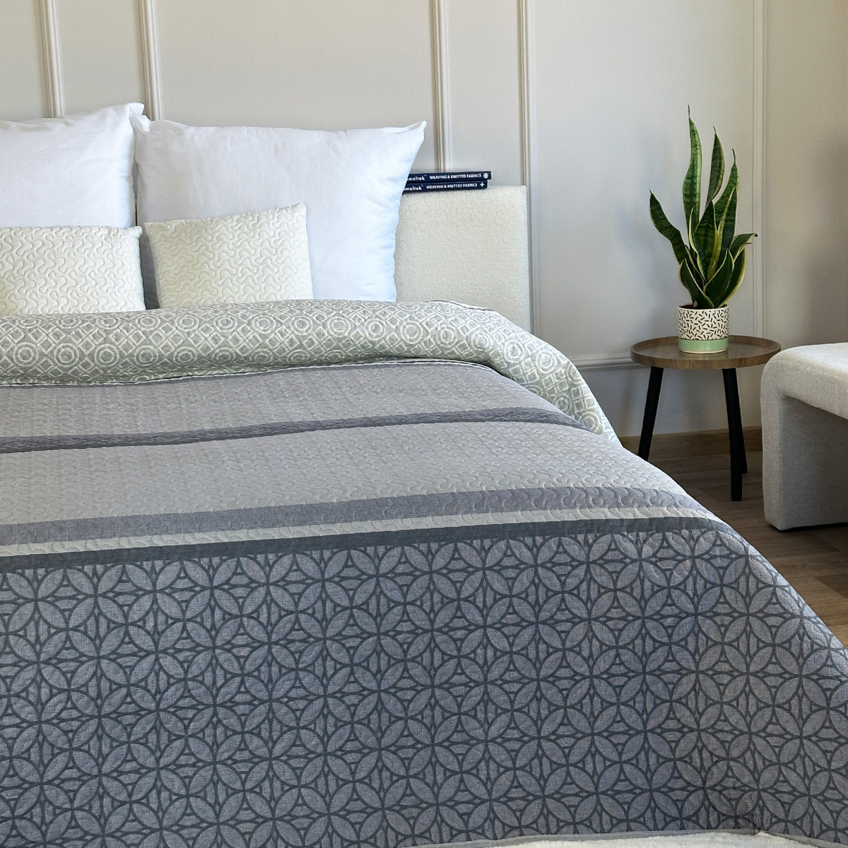 Elegantní přehozy na postel i pohovku. Kompozice atraktivních barev bude ladit s každým vybavením ložnice nebo obývacího pokoje. Každý přehoz s atraktivním prošívaným vzorem má polyesterovou výplň. 100% matné polyesterové vlákno. Teplota praní 30°C.