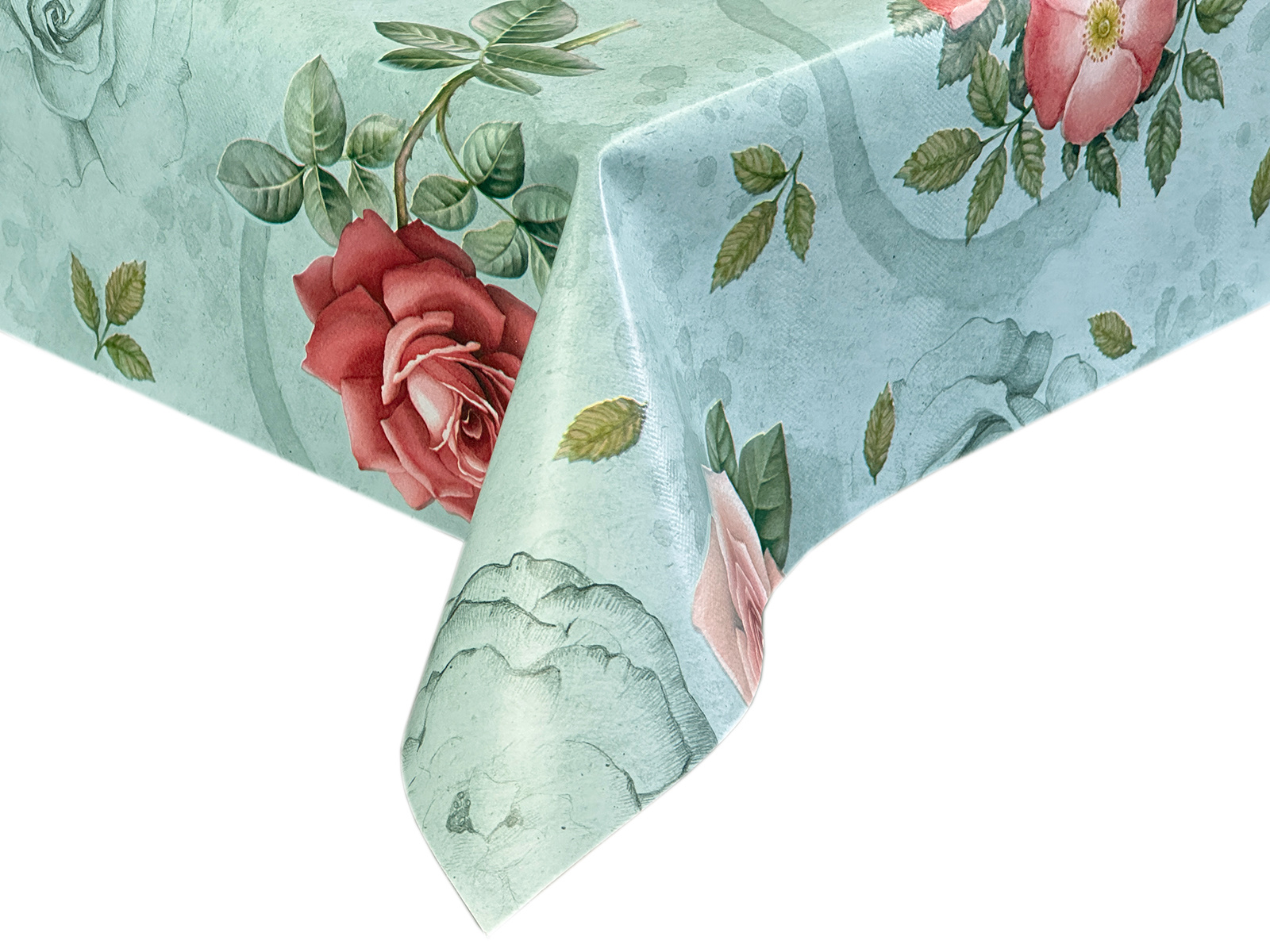 • Foliový ubrus na podkladu z plátna v rolích 140 cm šir. a 20 m dlouhých. Složení: potištěná fólie 100% PVC na podkladu ze 100% plátna PP. Oeko-Tex Standard 100.