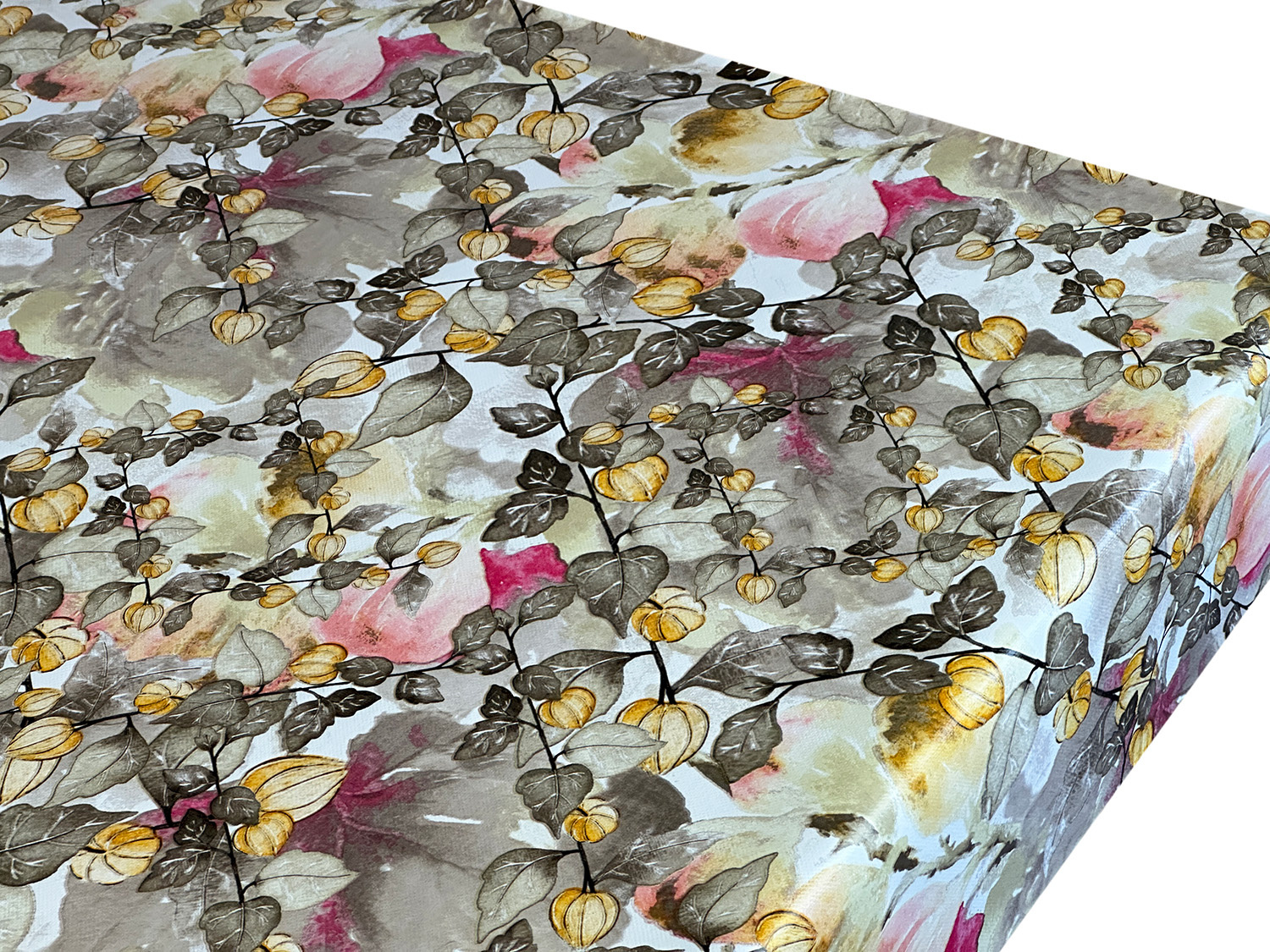 Foliový ubrus na podkladu z plátna v rolích 140 cm šir. a 20 m dlouhých. Složení: potištěná fólie 100% PVC na podkladu ze 100% plátna PP. Oeko-Tex Standard 100.