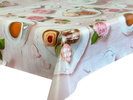 Foliový ubrus na podkladu z plátna v rolích 140 cm šir. a 20 m dlouhých. Složení: potištěná fólie 100% PVC na podkladu ze 100% plátna PP. Oeko-Tex Standard 100.