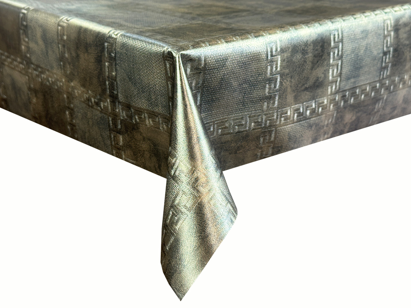Metallico 3D. Foliový ubrus na podkladu z 100% polyester v rolích 140 cm šir. a 20 m dlouhých. 3D design. Složení: potištěná fólie 100% PVC na podkladu ze 100% plátna polyester.