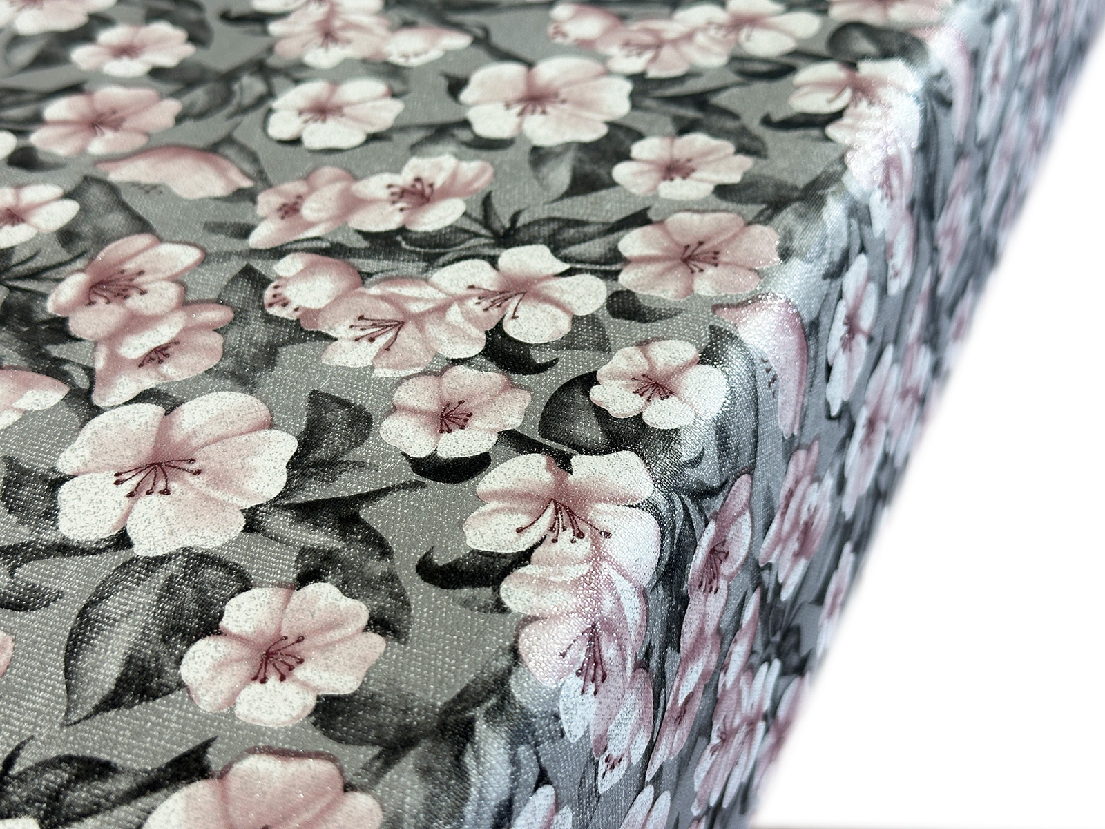 Foliový ubrus na polyesterové podložce v rolích, šířka 137 cm, délka 20 m. Složení: 100% PVC na 100% polyesterovém podkladu. Elegantní materiál napodobující tištěný materiál, potažený lesk. Velký výběr vzorů, možnost vybrat si vlastní sbírku. Pro vystavování nabízíme speciální police.