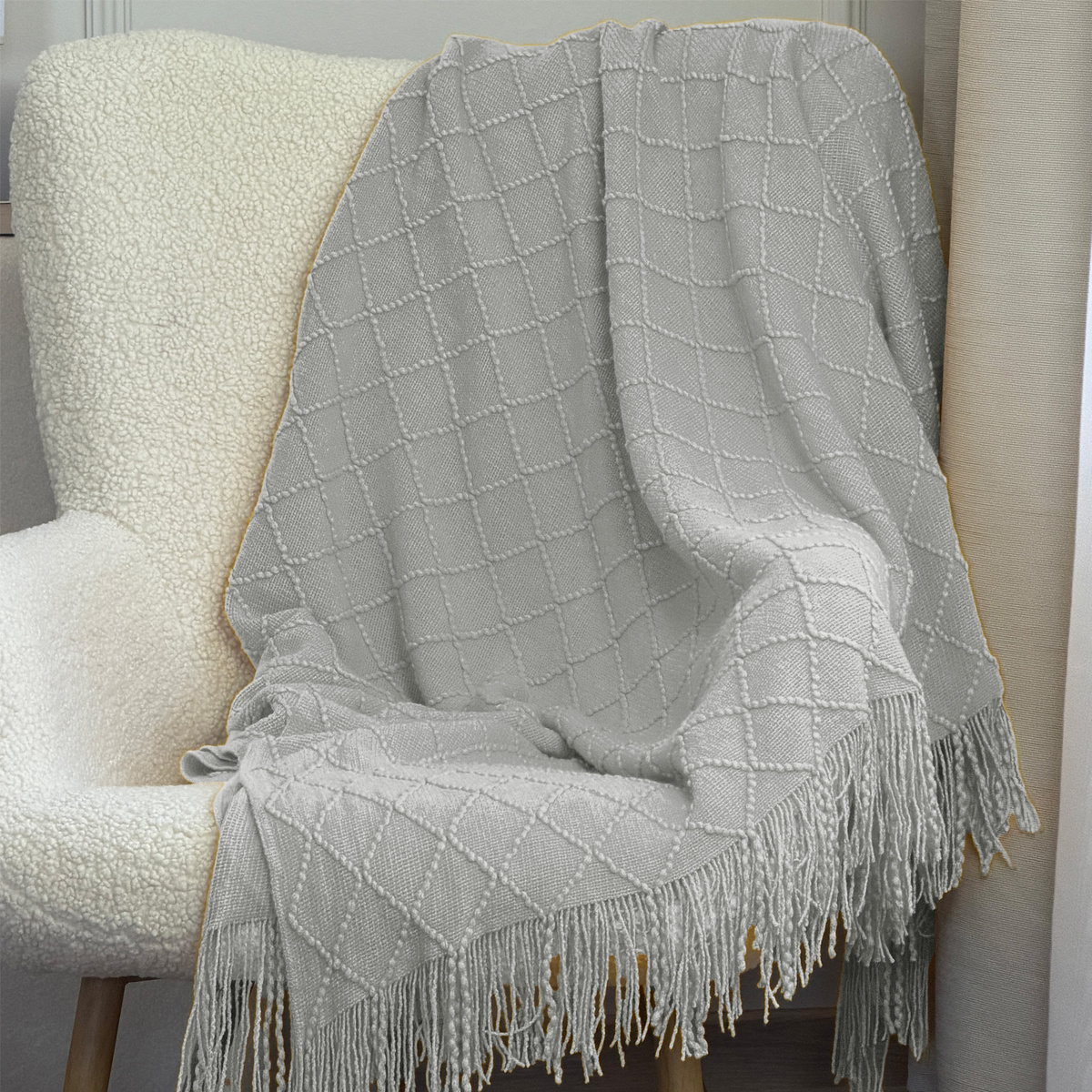 Akrylová příze, ze které je deka vyrobena, je snadná na údržbu a odolná proti mačkání, takže si pléd dlouho zachová svůj bezchybný vzhled. Třásně na okrajích dodávají dece lehkost a stylový vzhled.