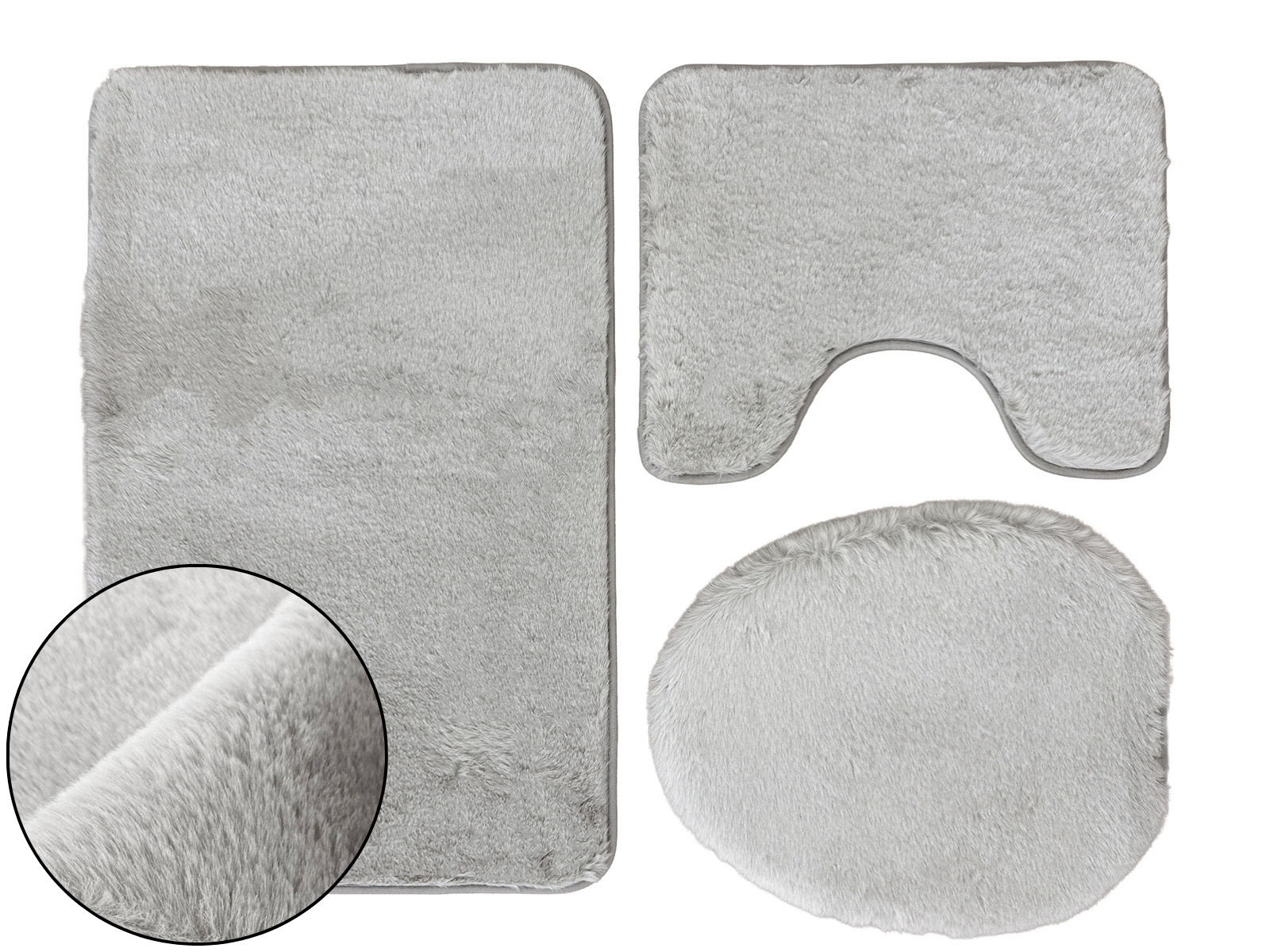• 3dílná sada: obsahuje 1× koupelnovou předložku, 1× předložku na WC s výřezem a 1× potah na WC prkénko