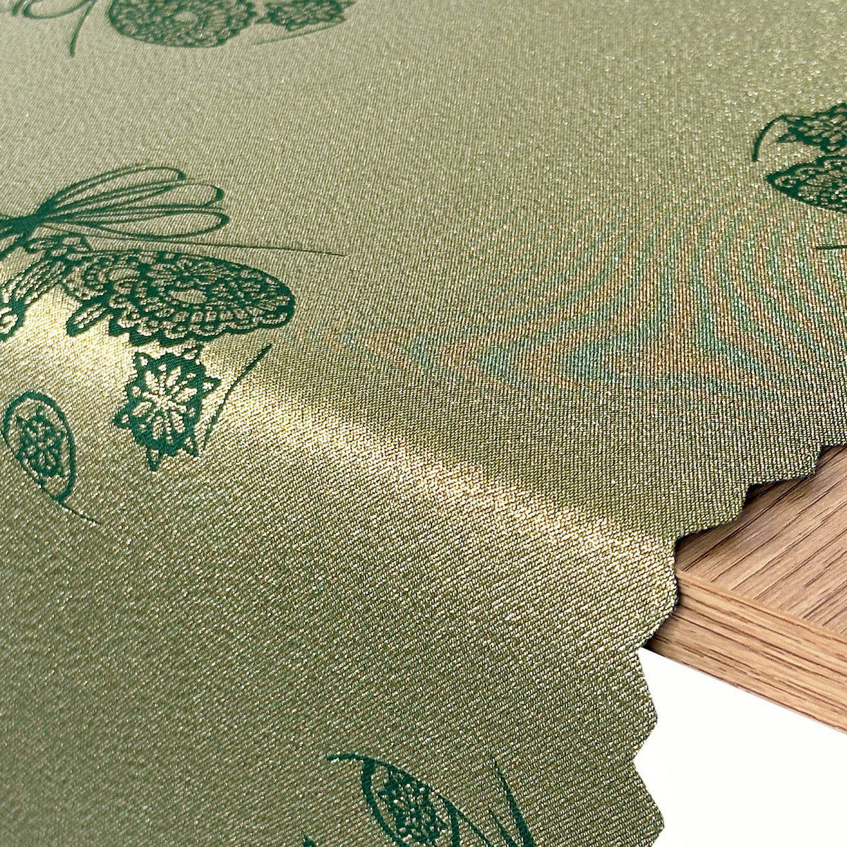 Nešpinivé ubrusy a běhouny (s nešpinivou úpravou ). 100% polyester, žakárové s voděodpudivou úpravou. Nešpinivá, voděodpudivá úprava prodlužuje životnost ubrusu a je nezávadná. Doporučené praní: 30°C. Gramáž 190 gsm. Oeko-Tex Standard 100.