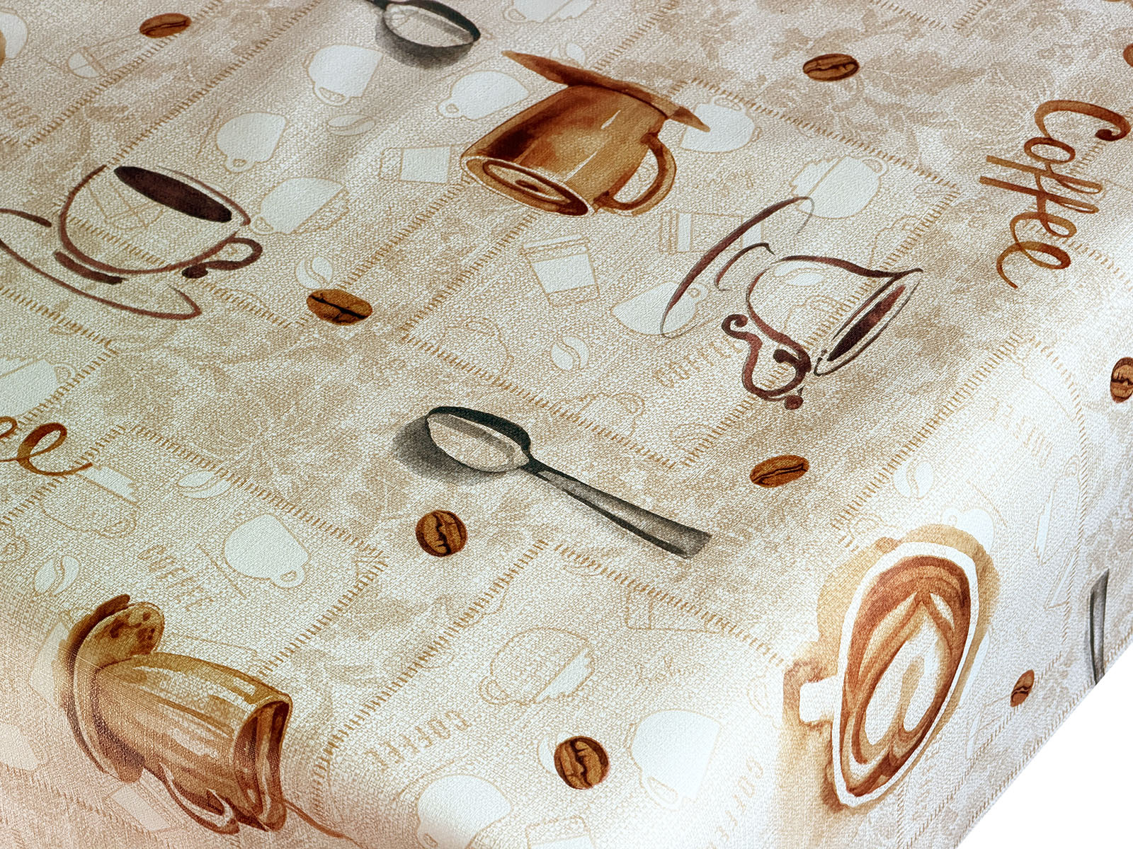 Foliový ubrus na podkladu z plátna v rolích 140 cm šir. a 20 m dlouhých. Složení: potištěná fólie 100% PVC na podkladu ze 100% plátna PP. Oeko-Tex Standard 100. Made in Turkey.