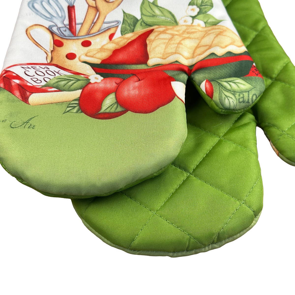 2 Kuchyňské rukavice s magnetem, pravá a levá. Velikost 16x27 cm. Materiál: 100% polyester se sítotiskem, výplň z polyesteru. Doporučené praní: 30°C.
