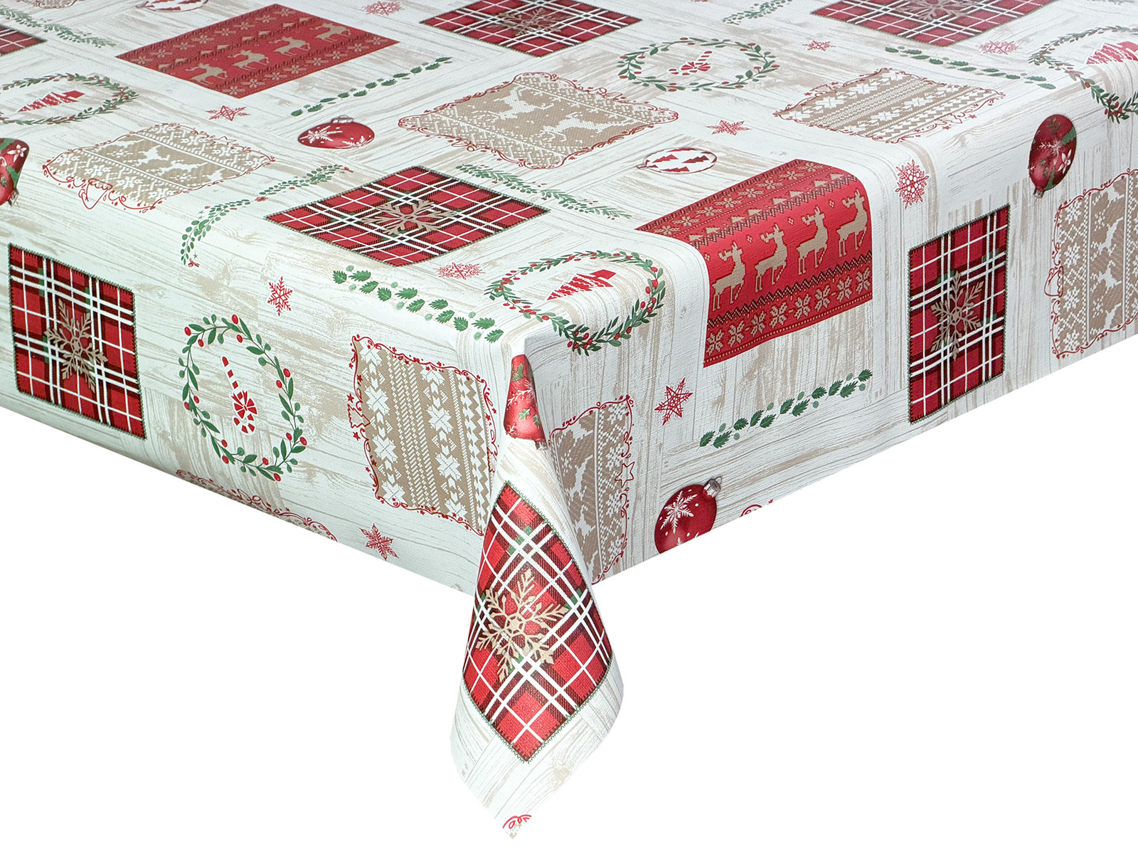 Foliový ubrus na podkladu z plátna v rolích 140 cm šir. a 20 m dlouhých. Složení: potištěná fólie 100% PVC na podkladu ze 100% plátna PP. Oeko-Tex Standard 100. Made in Turkey.