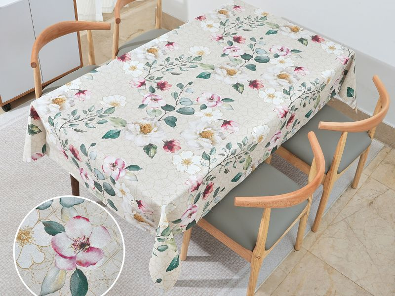 Díky voděodolné úpravě je tkanina praktická na používání, snadná na údržbu a odolná vůči drobnému znečištění. Skvěle se hodí jako materiál na ubrusy, běhouny, prostírání, bytové dekorace i další textilní projekty.