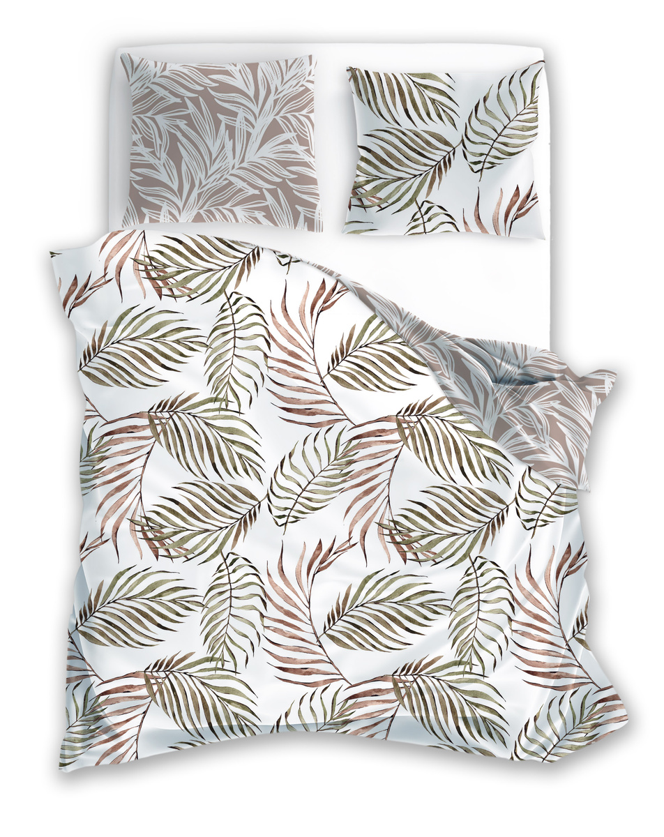 Vyrobeno z bavlněného saténu. Součástí sady je povlak na přikrývku a jeden povlak na polštář.