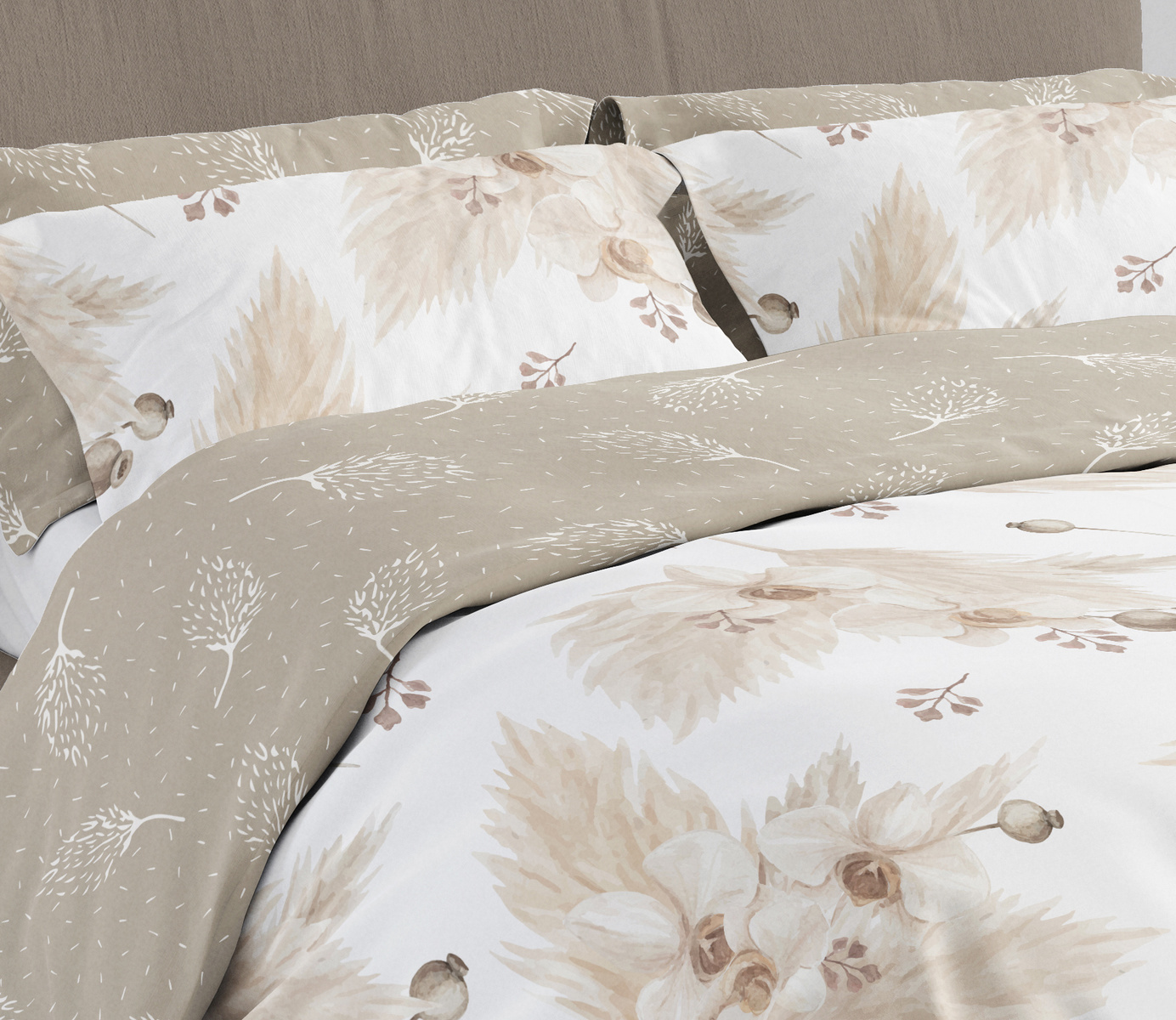 Vyrobeno z bavlněného saténu. Součástí sady je povlak na přikrývku a jeden povlak na polštář.