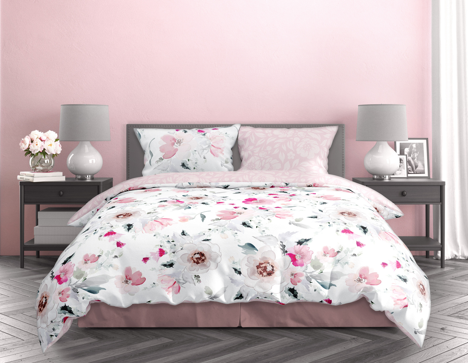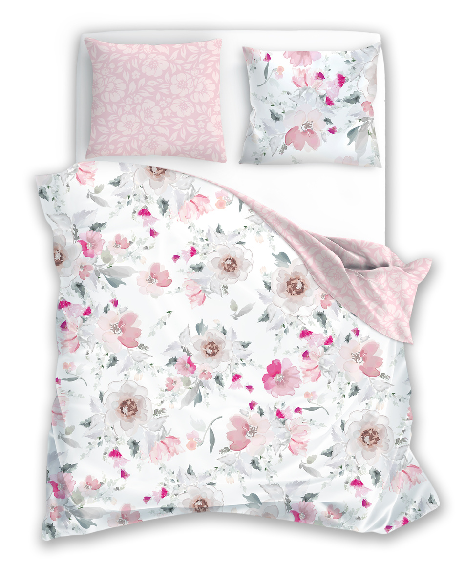 Vyrobeno z bavlněného saténu. Součástí sady je povlak na přikrývku a jeden povlak na polštář.