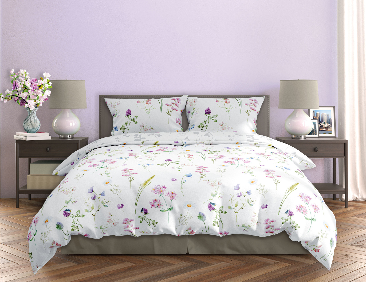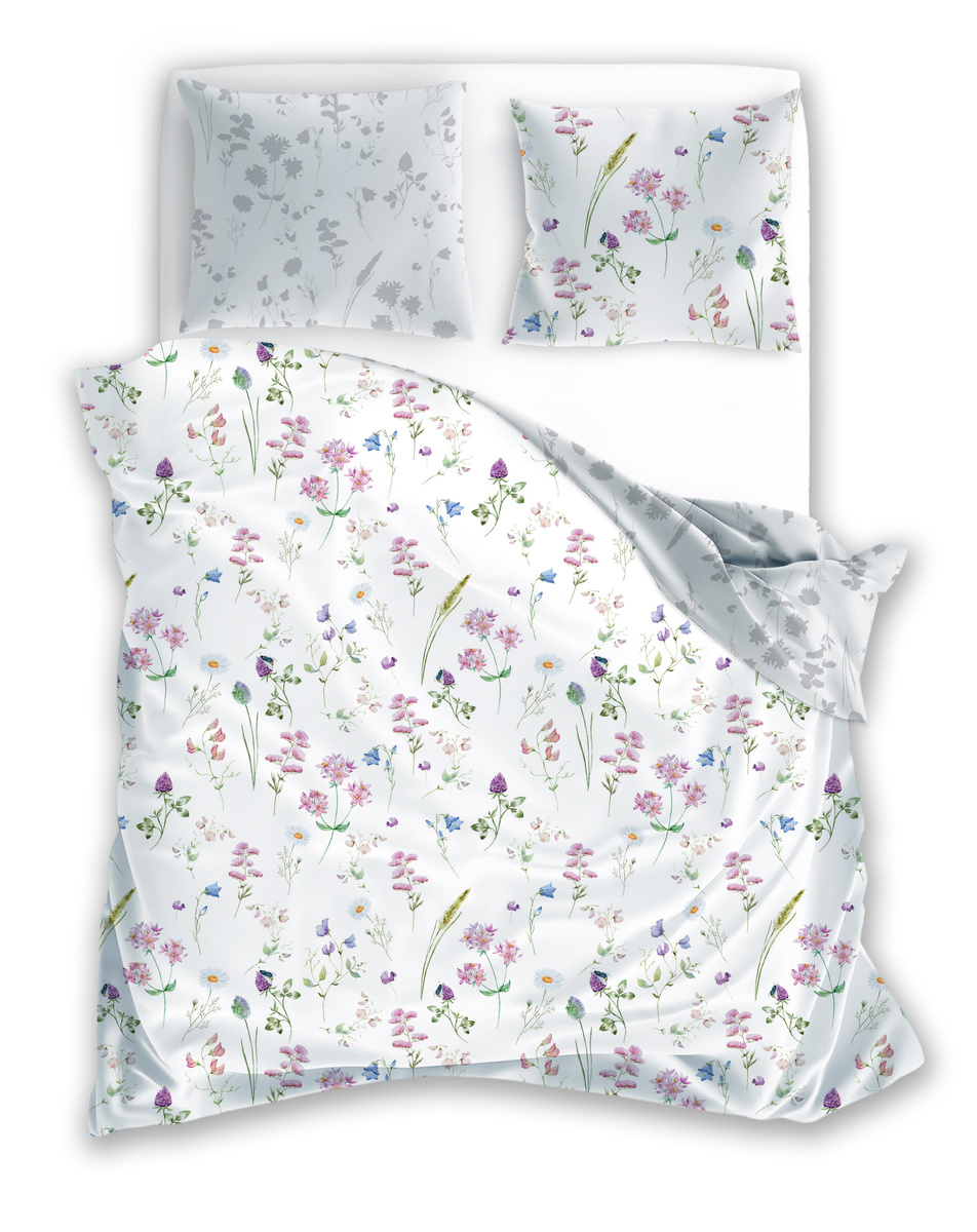 Vyrobeno z bavlněného saténu. Součástí sady je povlak na přikrývku a jeden povlak na polštář.