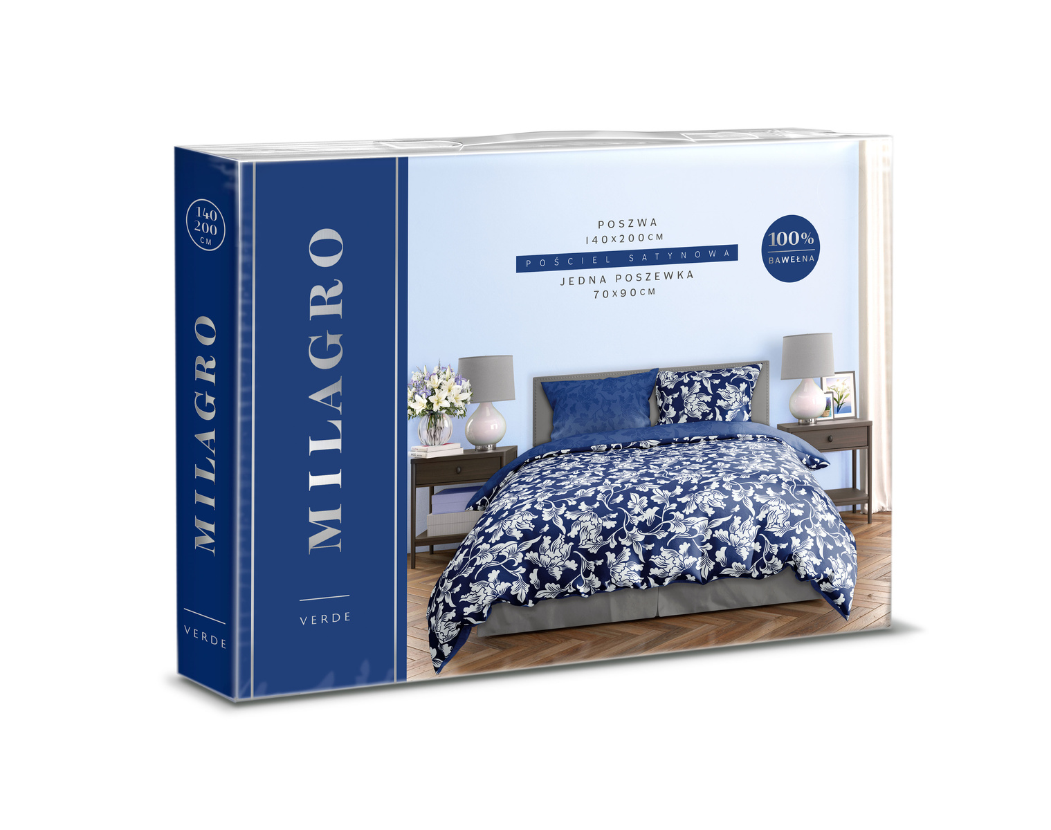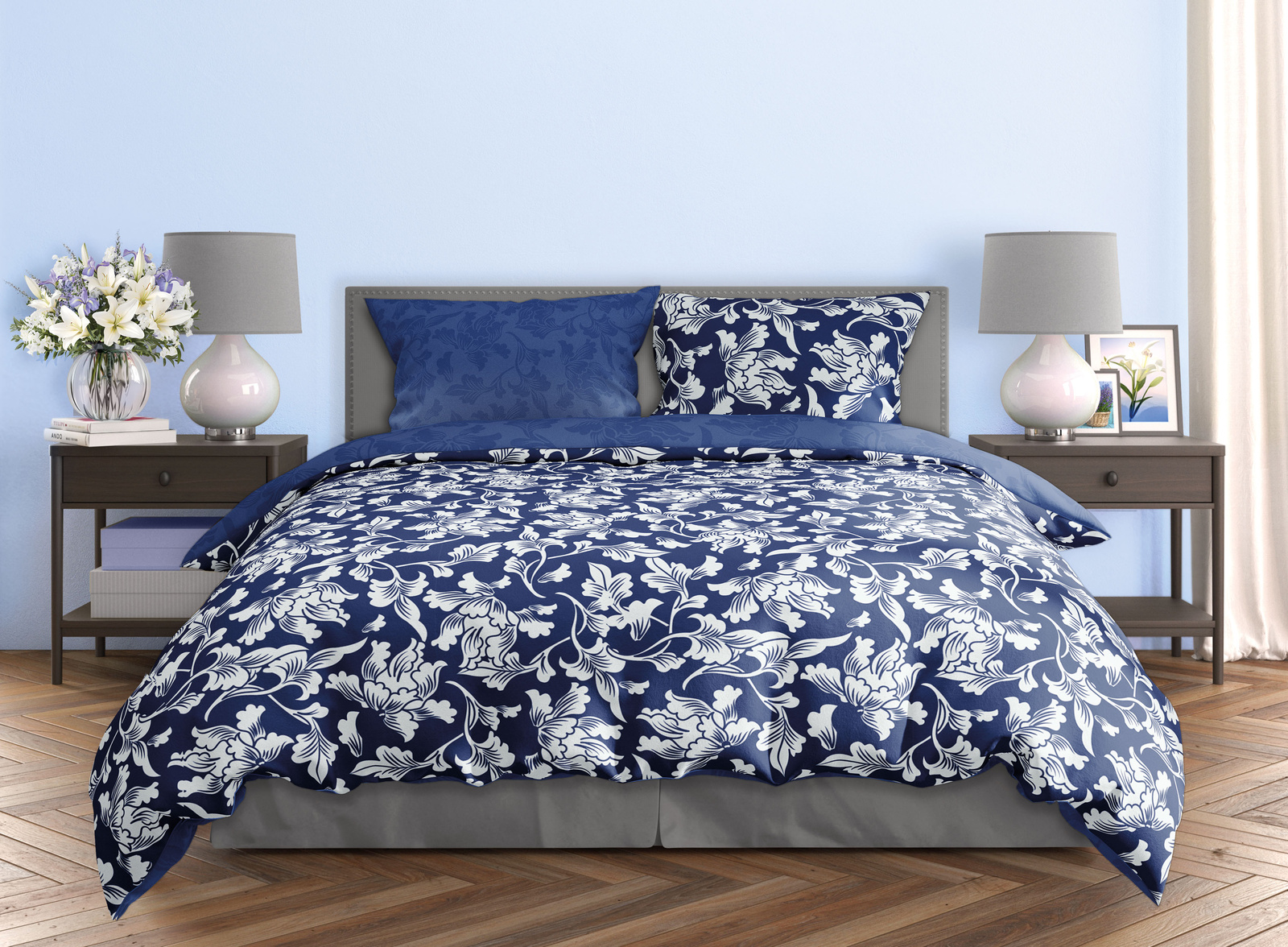 Vyrobeno z bavlněného saténu. Součástí sady je povlak na přikrývku a jeden povlak na polštář.
