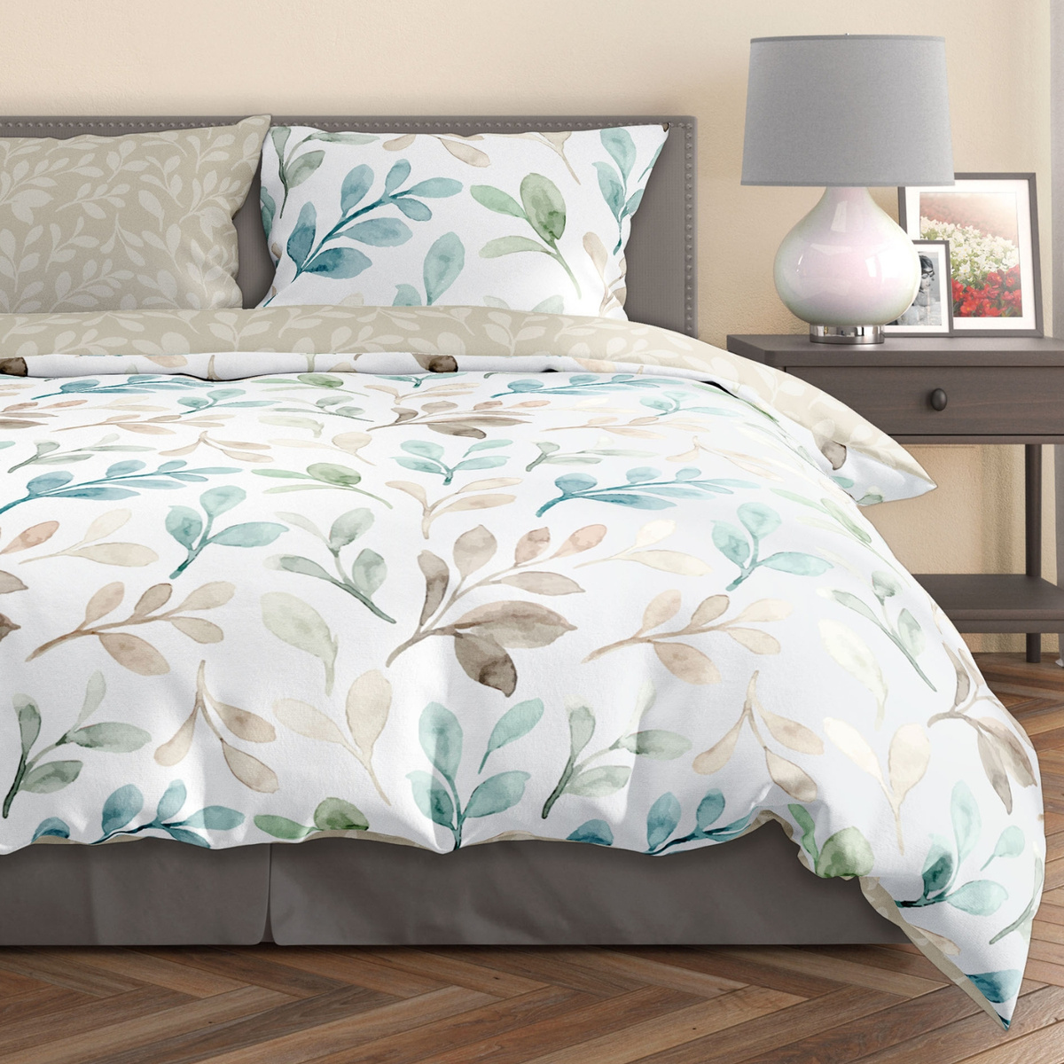 Sada je vyrobena z bavlněného saténu a obsahuje povlak na peřinu a dva povlaky na polštáře.