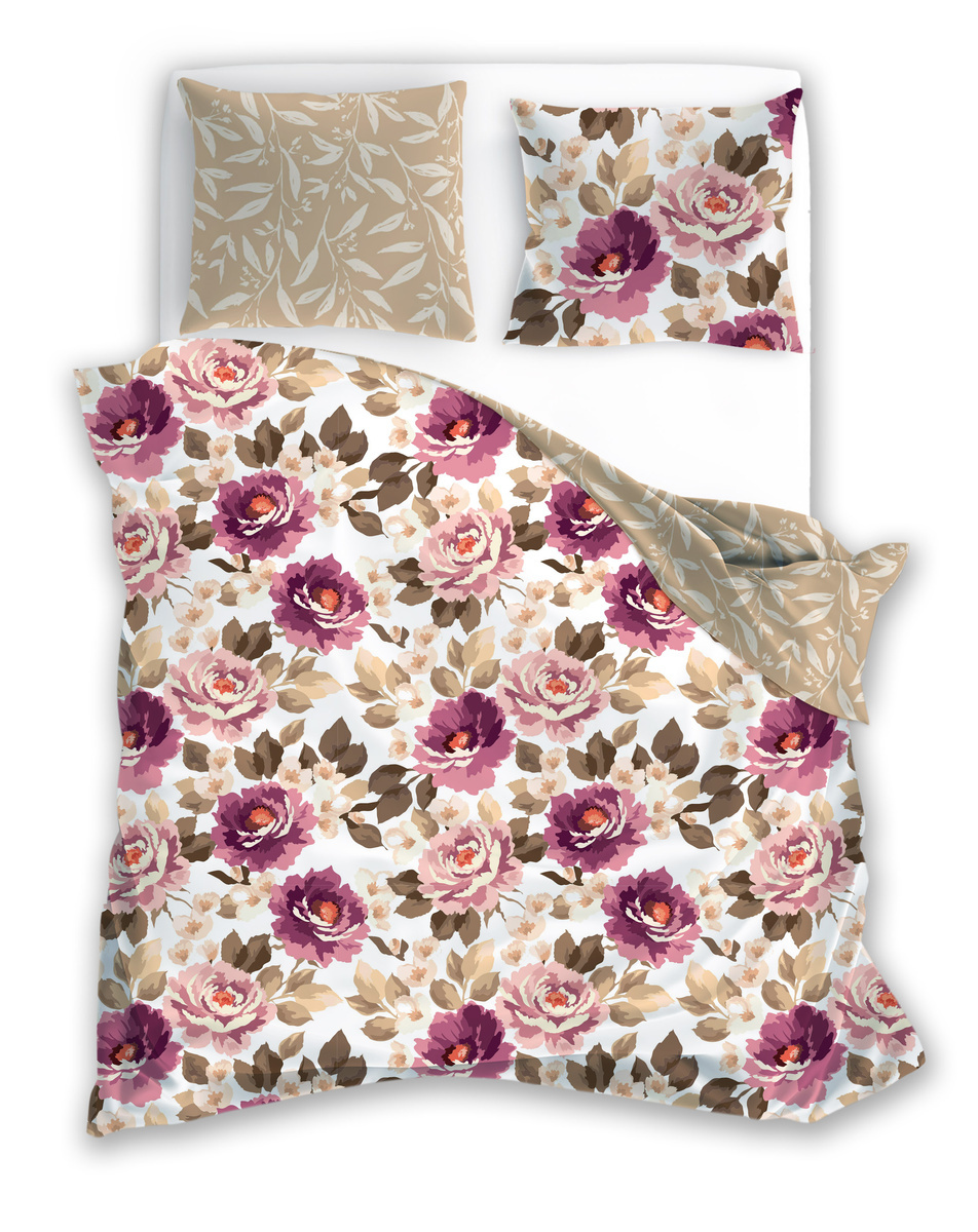 Sada je vyrobena z bavlněného saténu a obsahuje povlak na peřinu a dva povlaky na polštáře.