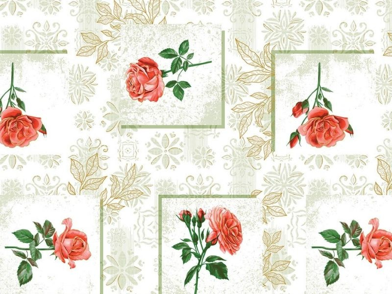 Foliový ubrus na podkladu z plátna v rolích 140 cm šir. a 20 m dlouhých. Složení: potištěná fólie 100% PVC na podkladu ze 100% plátna PP. Oeko-Tex Standard 100. Made in Turkey.