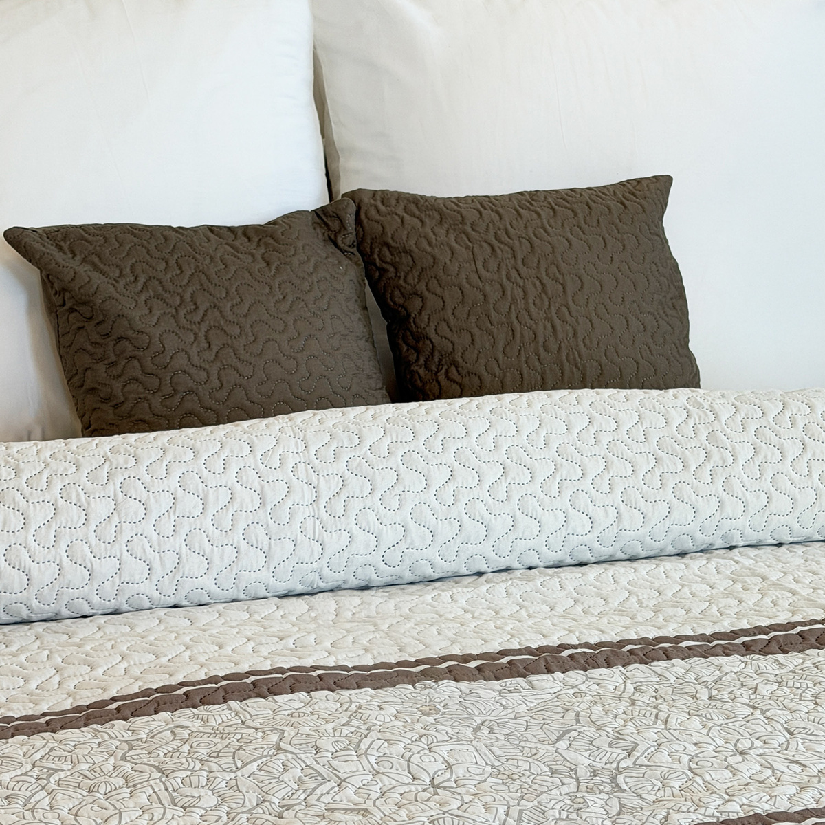 Elegantní dvoustranné přehozy na postel i pohovku. Kompozice atraktivních barev bude ladit s každým vybavením ložnice nebo obývacího pokoje. Každý přehoz s atraktivním prošívaným vzorem má polyesterovou výplň. 100% matné polyesterové vlákno. Teplota praní 30°C. Oeko-Tex Standard 100.