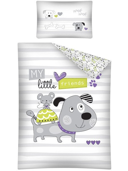 Bavlněné dětské povlečení. Materiál: 100% Bavlna. Sada se skládá z 1 povlečení a 1 povlak na polštář. Zapínání na zip. Doporučené praní: 40°C. Oeko-Tex Standard 100.
